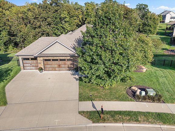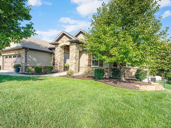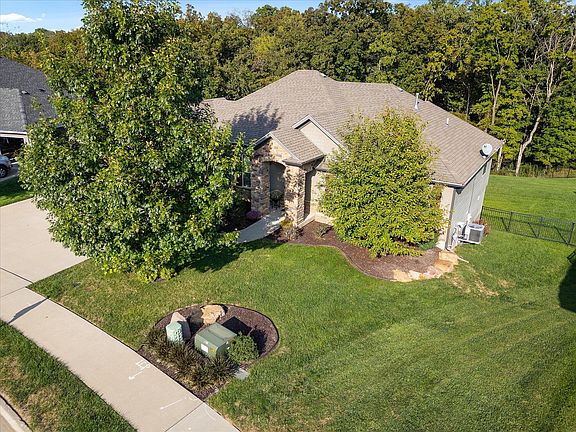 Welcome to this meticulous ranch-style walkout home built by Hansman Construction, Perfectly situated in the secluded Fox Lair subdivision and designed with both elegance and everyday comfort in mind, this residence offers 4 bedrooms, 3 full bathrooms, and a 3-car garage, all within a popular and functional open floor plan. The heart of the home features expansive living room windows that frame serene views of the 1.11-acre wooded lot and backyard, creating a private retreat surrounded by nature. Inside, you'll find hardwood floors, a neutral color palette and a charming kitchen complete with gas range, granite countertops, bar-top seating, butler's pantry, and a regular pantry. The home also includes both a formal dining room and a breakfast room, perfect for entertaining or casual gatherings. The primary suite is a relaxing escape with a standalone shower and dual vanities, offering both style and functionality. The walkout lower level is designed for enjoyment and convenience, boasting a wet bar, spacious family and recreation rooms, safe/hunting storage room, a pet-lover's bathing area, and abundant storage. Step directly outside to enjoy the beautifully manicured & huge backyard while unwinding and taking in morning sunrises on the covered back deck overlooking the wooded views, or head down to the private concrete patio featuring a pergola and hot tubperfect for family fun and entertaining under the stars.