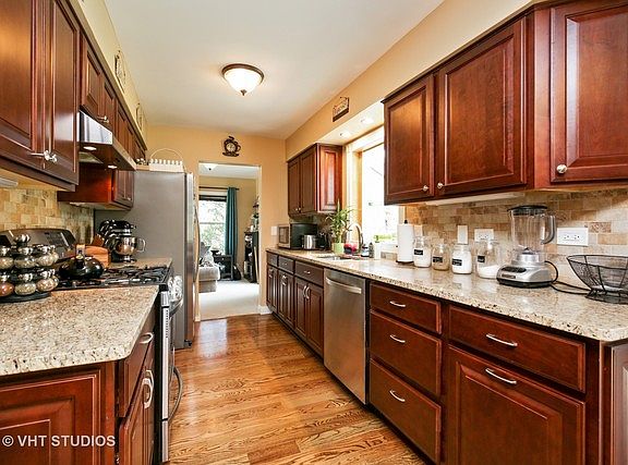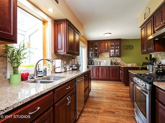 Absolutely stunning! Beautifully remodeled 2-story w/ full finished bsmnt! Gorgeous hardwood floors, brand new extended kitchen w/ upgraded raised panel Cherry Cabinets & beautiful Granite counters! SS appl & full wall of custom cabinetry used as Butler's Pantry or Bar. Flexible floorplan! Huge LR & DR combined as Great Room. Owner is using FR as large Dining Area. Master bedroom features volume ceiling, walk in closet & 2 add'l closets. 2 other bedrooms nicely sized offer ceiling fans/lights. Plush newer carpeting thru-out. New patio doors lead to large fenced yard w/ custom brick paver patio & Pergola! New front door, oak staircase, 6-panel white doors & trim, remodeled powder room & neutral decor! Entire home professionally painted in today's Pottery Barn colors. Finished bsmnt offers large recreation room & wet bar w/ secret door. Large storage area W/D and laundry tub. New furnace, A/C & HWH. Roof only 4yrs old. Great neighborhood & schools! Close to park. Come fall in love!