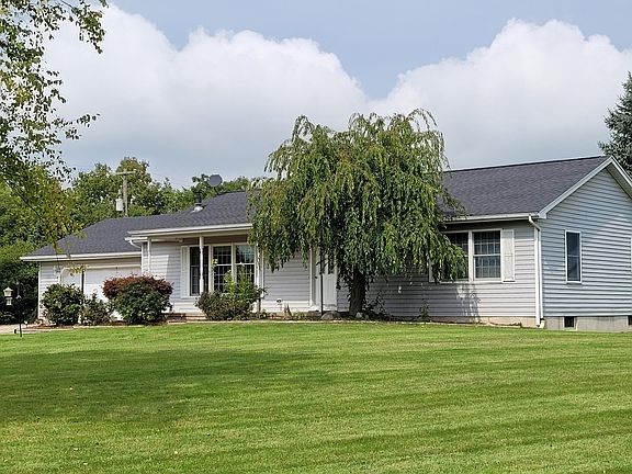 This 2 Bedroom, 2 Bath modular Ranch home is ready to be loved by new owner(s). Situated on nearly 6 beautiful acres abundant with wildlife, ornamental fruit trees and peaceful views. Open floor plan in main living area, gas fireplace, main floor laundry, and large spa tub in main bedroom bath. Home has full basement which provides loads of indoor storage or could be finished into rec space or a family room. In addition to the attached 2 stall garage, this home also offers a 24x40' pole barn with electricity, perfect for storing your riding mower, boat, ATVs, trailer, etc. Come take a look! Any offers received will not be reviewed until after 6:00pm on Sunday, October 22. Agent related to Seller.