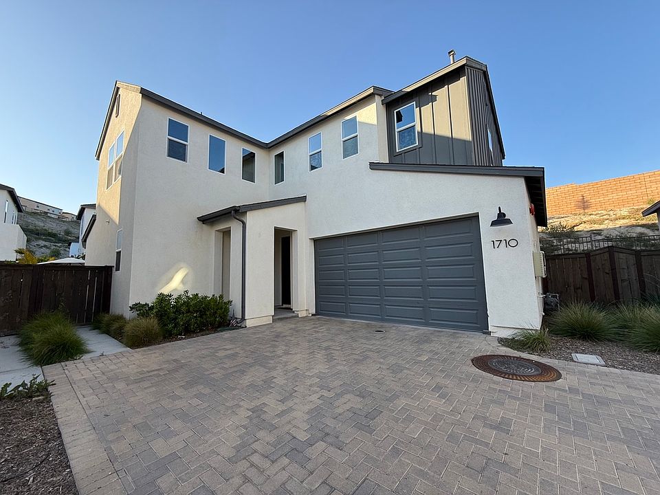 AVAILABLE JULY 1. New construction home in Cota Vera, in Otay Ranch. This two level single family residence has 4 bedrooms, 3 full bathrooms, 2 car garage, 220V electric vehicle charging, solar panels for electric generation, and an outdoor living space. This home boasts the largest floor plan offered in Whitmore, complete with a large kitchen, walk in pantry, a large downstairs living space, and a separate upstairs family room. The owner's suite is large and offers privacy in its own wing upstairs away from the other bedrooms. It includes a large soaking tub, separate vanities, and a walk in closet. 1710 also comes packed with the latest in technology, from an 8-panel solar panel system, to Ring alarm and camera protection, to Nest learning thermostat, and more. Pets are considered on a case-by-case basis, and tenants will be offered a lease of 12 months with the option to extend as desired. Applicants wishing to apply will be asked to complete a thorough background and credit check via RentSpree. Owner pays HOA dues. Tenants responsible for utilities (water, trash, electric).