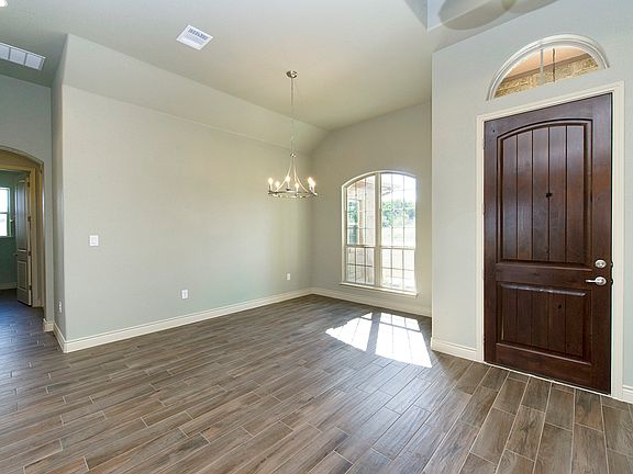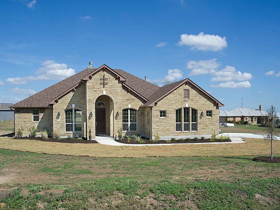 Beautiful 1-story, stone custom built home on .80 acres. Interior features include tall ceilings, arched entries, wood-look tile floors, designer lighting with incredible ceiling feature and stone fireplace in the living area. Open living, kitchen & breakfast/eat in kitchen areas. Granite kitchen island & work surface, stainless appliances and large pantry. This home provides 2 primary bedroom suites. The larger primary has a bay window, sitting area and huge attached bath. Walk-in closets, lots of windows allowing natural light and blinds for privacy. Recessed lighting many places throughout the home. The patio out back is covered and features designer touches. Roof 1.5 yrs old, backyard has wrought-iron fencing, french drains and 4 security cameras surround the house. Irrigation system in front and side yards. County and school taxes only...no city taxes.