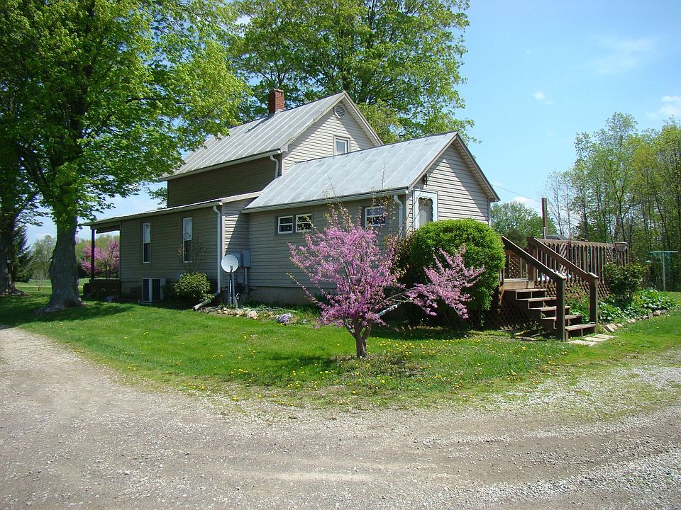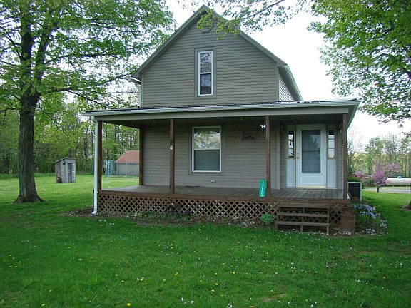 Immaculate, cute, and cozy 2 bedroom, I bathroom home on 11 acres. Step onto the covered front porch and enter this home into a nice sized entry way. Adjacent is the tastefully decorated living room with carpet and several windows allowing for ample lighting and enjoying the scenic country views. The eat-in kitchen is filled with Oak cabinets, updated stainless steel appliances (2013) and titled flooring. Adjoining is the dining room area with ample lighting and carpet flooring. For you convenience, the laundry/mud room is on the first floor. 2 nice sized bedroom are located on the second floor. Entertain friends and family on the nice sized rear deck. One of the buildings is a summer kitche