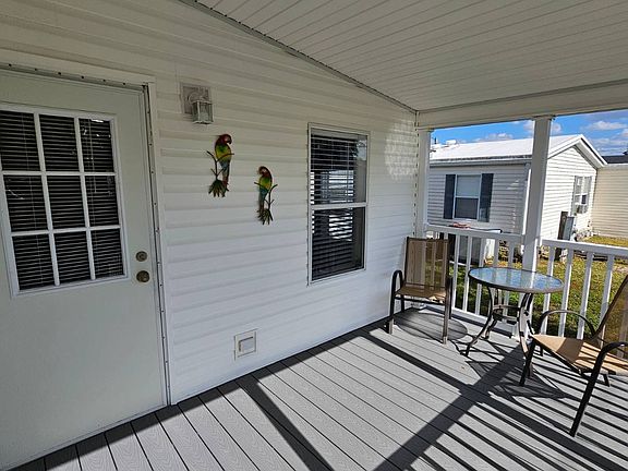 Beautifully maintained 2005 3-bedroom, 2-bath home, offered turnkey and move-in ready. This exceptionally clean home features 1,378 sq. ft. of comfortable living space and a new roof (2023) for added peace of mind. Enjoy a spacious kitchen, perfect for cooking and entertaining, along with an in-home laundry room. The bright, open living areas create a welcoming flow throughout the home. Both bedrooms are generously sized, and the bathrooms are well kept and spotless. Relax on the lovely back deck/porch, overlooking a neat and well-maintained yard-ideal for morning coffee or evening unwinding. Conveniently located near grocery stores, pharmacies, gas stations, and more. Positioned right off Route 41, the home offers quick access to North Fort Myers and Punta Gorda. The community offers a lot fee of $782 per month and outstanding amenities, including: Banquet facilities, billiards, bocce ball, clubhouse, community activities, dog park, fishing, game room, gated entry, horseshoes, laundry facilities, library, on-site management, pet-friendly policies, RV storage, shuffleboard, social club, and a swimming pool. This home has been well cared for, beautifully decorated, and is truly move-in ready. Start enjoying the Florida lifestyle immediately! Give Lulu and David a call!