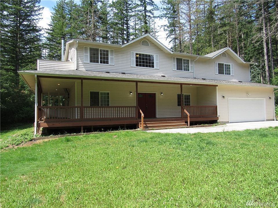 Enjoy natural surroundings with this spectacular traditional two-story home on a lovely 5 acre wooded lot in Maple Valley. Exterior features that include a wrap-around covered front porch, covered rear porch and an amazing and expansive deck, including a detached 2 car garage/shop. Double door entry, Interior has fresh carpet and paint. Master bath features a soaking tub and separate shower. Move-in ready.