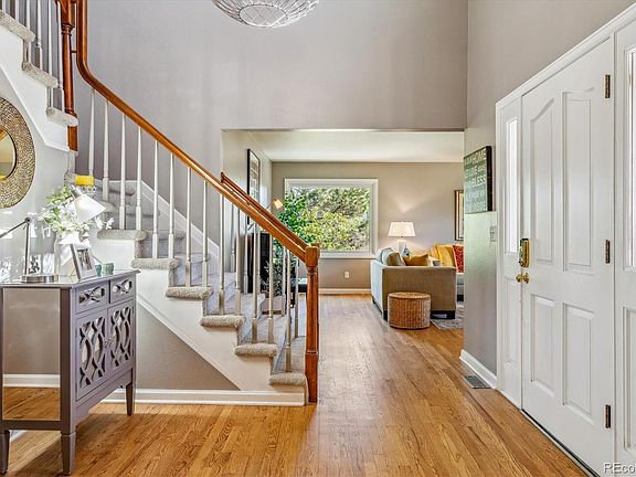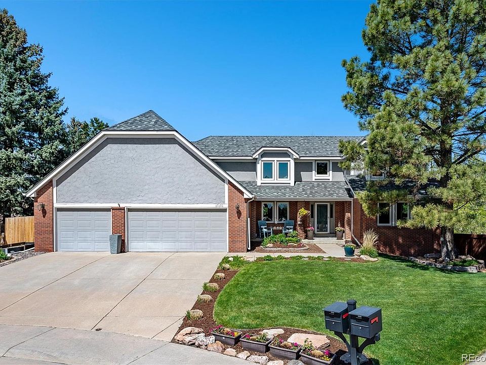 WOW!!! Incredibly updated Richmond Normandy at the foot of a cul-de-sac with a one-third acre lot! This beautiful home has a finished walk-out basement, one of largest lots in the community, and extensive remodeling including full kitchen remodel, bathroom remodels, new carpet and luxury vinyl plank to join the oak hardwood flooring that covers the entire main level. The oversized 3-car garage (28'6" deep x 31'10" wide) has pull-down access to a large attic storage area, as well as automatic door openers on both garage doors. The exterior of the house has brick surround on both the main and basement levels, privacy fencing, a covered front porch (7x20), a partially covered rear deck (10x30), a covered patio (14.8x30), and numerous pine, spruce, and deciduous trees. Plus the roof was just replaced in May 2024. This home is spacious, airy, and welcoming. And it boasts the acclaimed Cherry Creek School District. See room descriptions for specific info. Be prepared to be amazed at this awesome home!