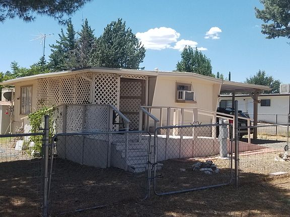 Cute mobile home with permitted add ons. Home is 816+ extra 200 SQ FT room off back not included in SQFT. Large open kitchen, 2 bedrooms dry wall in most rooms, gas furnace on demand water heater, window A/C units in every room. Outside has perimeter fencing, RV Parking, mature trees, carport, and enclosed room with hot tub.