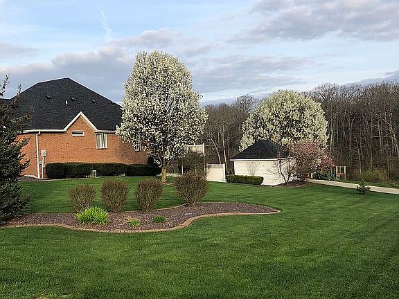 This beautifully maintained, ranch-style home features an in-ground saltwater pool, covered patio and upper deck overlooking a stunning backyard, complete with woods and a creek in the distance. Grand foyer and living room make for a beautiful entrance, with 18 ft ceilings and large windows, overlooking the expansive backyard. Separate Dining Room leads into the Kitchen, with Kenmore Elite appliances, a breakfast nook and sliding doors to a beautiful stone patio. The Master Bedroom features 2 closets and a spacious Master Bath, with a jacuzzi tub. The bright and airy walkout basement has two additional bedrooms, one with doors out to the pool, which could also be used as a study or playroom. Bonus room includes a pool table and kitchenette. Three large storage rooms have the potential to be turned into a playroom, gym or spare room. This home has new paint and light fixtures throughout, new flooring in two of the bedrooms, and a new roof in May 2019. The saltwater pool has a new pump and electric cover, LED multi-colored lights, and seating around the edges, perfect for swimming with children! There is a spacious pool house with a separate side drive. This lot features new rock landscaping, mature trees and a view you won’t find on any other street in Stoneridge! Stoneridge subdivision has a neighborhood playground, ball field and high speed fiber internet, installed in 2019.
