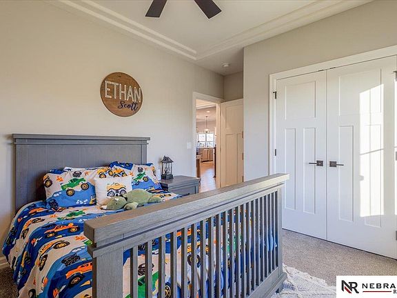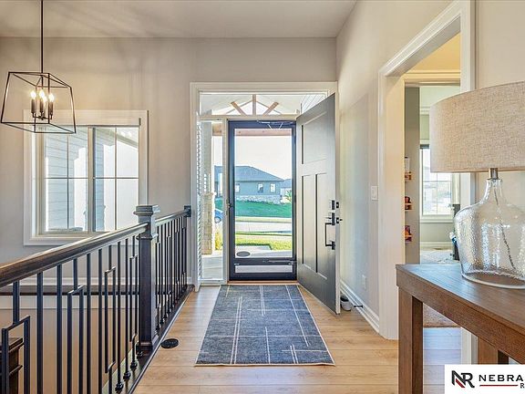 Newport Vista ranch home on a south facing corner lot. Great room features recessed ceiling, electric stone fireplace with a large mantle, and cabinets. The windows in the open concept area let in lots of natural light, rechargeable electric Hunter Douglas blinds included. Kitchen has custom locally made cabinets with under lighting, quartz countertops, large center island, gas cooktop, and walk-in pantry. Convenient drop zone coming in from the over sized 3 car garage. Laundry room equipped with sink, hanging and storage. Primary suite with recessed ceiling, double vanity, walk-in shower and walk-in closet. 2nd bedroom located next to full bath. Finished basement with 2 more bedrooms and 3/4 bath. Rec room includes wetbar and refrigerator. Lots of storage space. Radon mitigation system for peace of mind. Enjoy the outdoors on the covered patios. Fenced, landscaped yard with sprinkler system. HOA includes trash. AMA