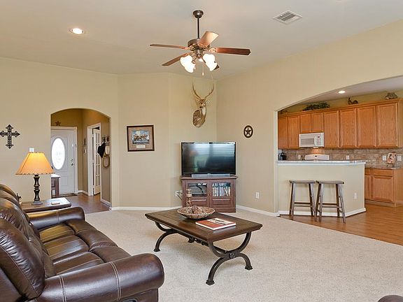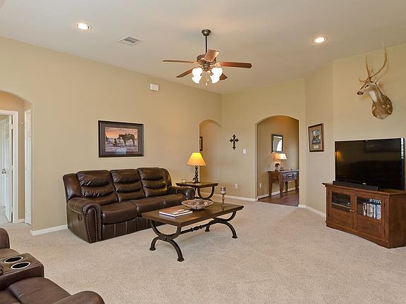 Charming lakefront home on +/- half-acre lot in pristine condition. Open floor plan with high ceilings & arched openings throughout. Living room w/large windows overlooking backyard & lake. Study w/French doors & large closet. Kitchen features 42'' wood cabinets, tiled backsplash, gas range & breakfast/serving bar. Large master features tray ceiling & walk-in closet. Master bath w/dual sinks, garden tub & shower. Fabulous backyard includes 30'x10' covered patio & garage w/two overhead doors.