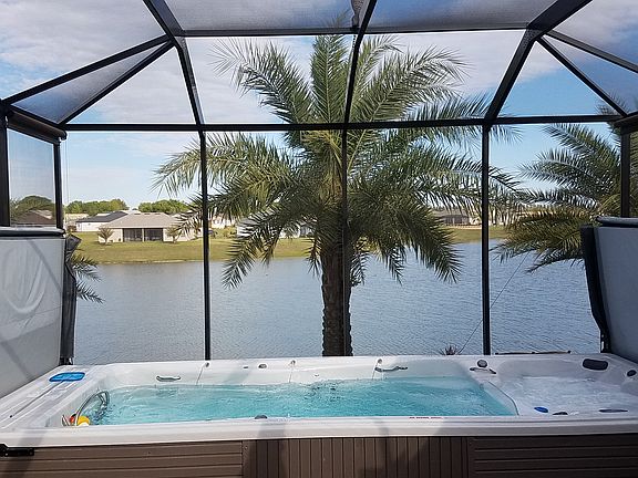 UNPRECEDENTED HOME AND LOCATION! Stonecrest in Summerfield is a gated/guarded, pvt. rds, golf cart comm. 3 mi. No. from The Villages. Beautiful upgrades throughout! This Custom Spruce home sparkles! Contemporary design, beautiful Italian grey plank ceramic tile fls. throughout. Magnificent views of the pond from the moment you enter, and a lanai that will make you feel like your in the Keys! The lanai is partially covered and enclosed with a birdcage, and an outdoor kitchen with all the bells and whistles including a tiki bar! This is definitely your WOW HOME! Even the grout in the glass backsplash in the kitchen was done with a matching glitter grout & pieces of the granite from the granite counter tops. There are two baths in the home and a powder room in the lanai for the perfect plan