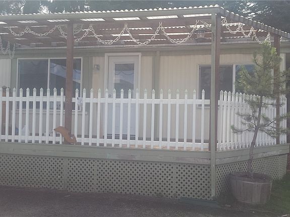 Clean 2brm. 1 bath with walk in shower. laminate flooring throughout except bath room. Nice kit. with eating space. Lrg double pane windows for natural lighting. Comes with air conditioner, refrig., range, dishwasher, built in microwave & washer and dryer. (no warranties given on appliances) for convenience of buyer. Nice carport with adjoining concrete uncovered patio. Total enjoyment on this huge covered front deck. Has second storage building that needs repair work. Back yd is mostly fenced.