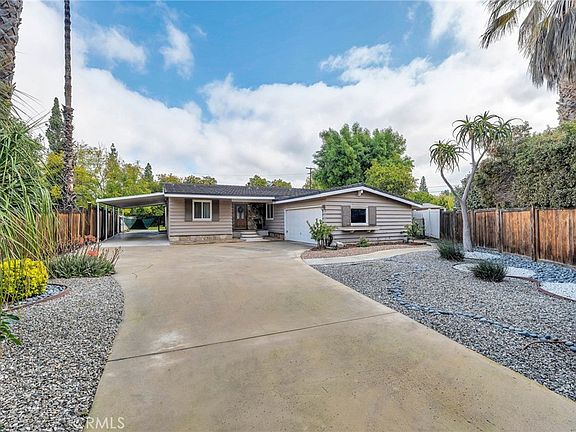 Check out this amazing property in Sherwood Forest where lots like this are a premium and with tons of room to expand, add an ADU (or 2) and located on a quiet cul-de-sac with very little traffic. The owner has recently updated this single-story ranch style home with a “PEX” Re-pipe and Main Water line for peace of mind. The dramatic, vaulted ceiling living and family rooms accented with recessed lighting, are highlighted by 2 stunning travertine floor to ceiling fireplaces and open Great Room Style to a granite accented eat-in kitchen where you can easily cook and entertain your guests. Additional features such as engineered hardwood flooring, dual pane windows, and plantation shutters are just a few of the upgrades you will enjoy. Indoor comfort in enhanced with 2 “split” heating and air systems in both the Primary Bedroom and in the living areas, forced air heating, plus fully insulated walls & attic. Easy-care vinyl fencing surrounds the private, sprawling, rear pie-shaped grounds inviting your imagination and is prime for expansion or an array of opportunities, and currently accommodates an existing approximately 600 Sq Ft Storage Building( way in back of lot. Double car carport + attached 2 car garage. Come envision your new beginning in this highly sought after neighborhood, while it’s still available!