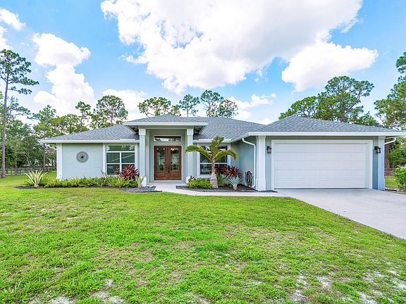 Embrace the freedom of space and privacy with this exceptional 2019 property offering 1.30 acres of land and a fully fenced yard located on a paved dead-end street. Step inside to discover a spacious split floor plan boasting 4 bedrooms, 2 bathrooms, and a 2-car garage. The interior features stylish finishes, including wood tile floors, granite countertops, and Samsung stainless steel appliances, creating an atmosphere of refined elegance. Impact resistant windows throughout. Outside, you'll find yourself immersed in nature, with plenty of room to roam, entertain on the large, covered patio, or simply relax under the Florida sun. Don't miss the opportunity to make this exquisite home yours. Schedule a showing today and start living the idyllic lifestyle you deserve!'