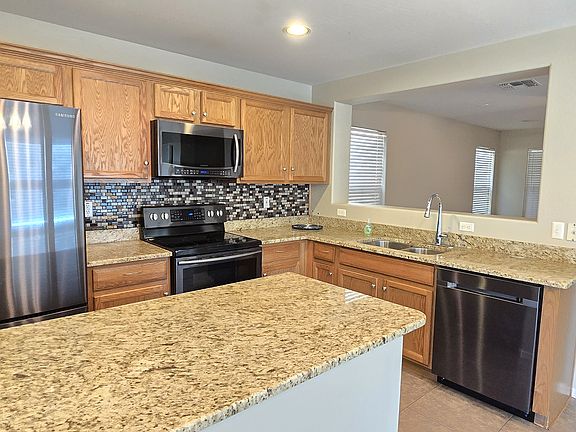 This charming and move-in ready rental home is a must see! Great layout features a spacious family room, and big eat-in kitchen with granite counters, tiled backsplash, stainless appliances, double oven, pantry, and island for extra prep space. Roomy additional bedrooms, ceiling fans throughout, and no carpet! Great master retreat offers a walk-in closet and master bath with double sinks. Great size backyard is perfect for kids or pets with a covered patio, lots of grass and mature landscaping. 2 car garage and extended slab parking. Nearby Park. Any pets that's approved by lessor will require an additional pet fee and rent increase.