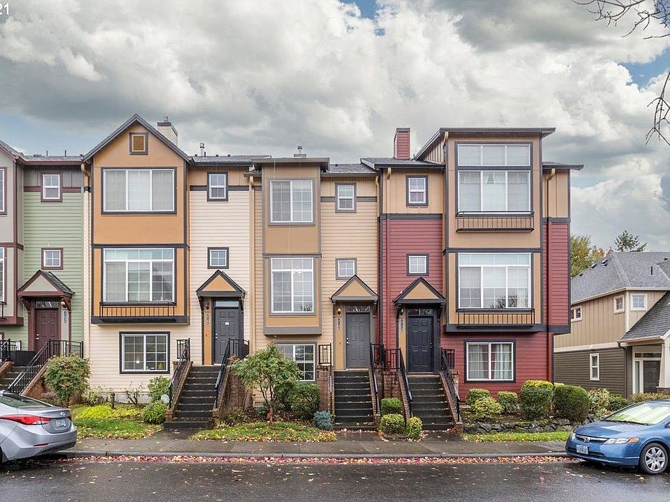 Sought after brownstone style townhome close to Nike & mass transit. Engineered hardwoods throughout main level including dining and living room. Large primary bedroom suite includes double vanity & dual closets. Lower-level third bedroom or den with easy access to garage. Stackable washer/dryer are included in the sale. HOA includes pool, gym, & hot tub.