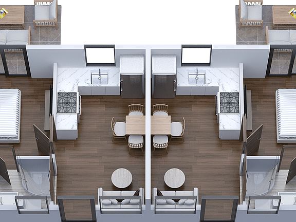 All Bills Paid Units. At just 320 sq. ft., these thoughtfully designed duplex units live larger than they look. Vaulted ceilings bring in a bright, open feel showing that tiny living doesn't have to mean cramped living.