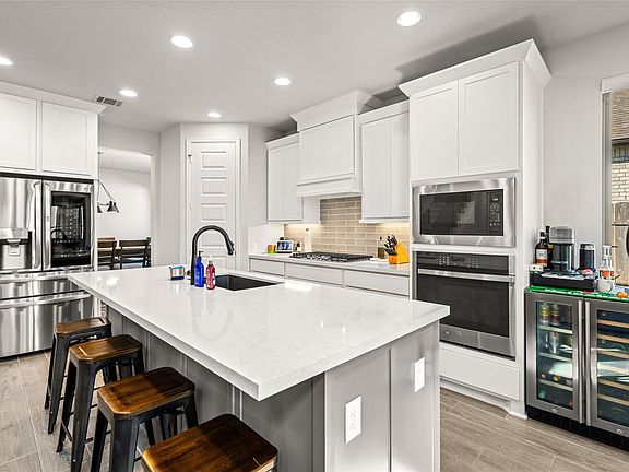 Large covered patioStainless steel appliancesLarge windowsQuartz countertopsModern kitchenUpstairs game roomRetractable screens