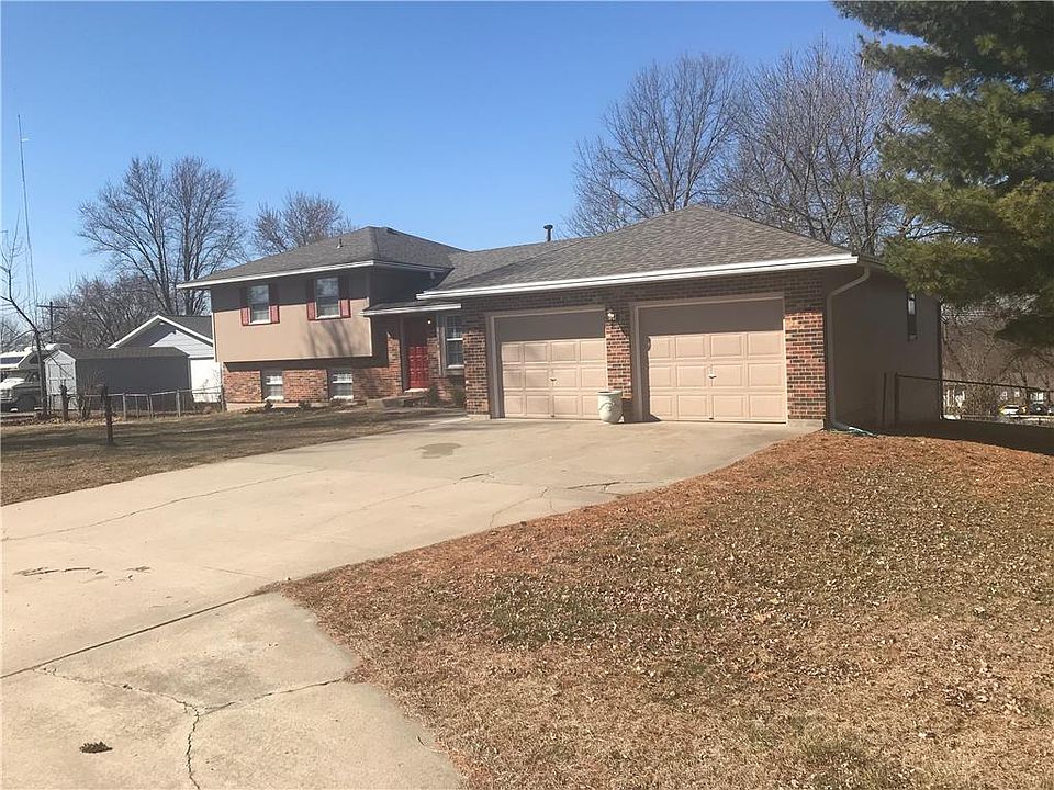 Beautifully updated 3 bd, 3 bth (4th non-conforming bd downstairs) home located outside of Holt city limits and in Kearney School District, best of both worlds. Open concept design with tons of living space and deck/patio space and completely fenced yard. Wood floors, new carpet and fresh paint throughout. Large closet on main floor can easily be turned into min floor laundry room. Oversized garage with additional storage. Outside access from all levels. Seller offers $500 door allowance to replace doors to deck. Home sits well off the road and has a ton of space for kids, human and furry. Walking distance to 43 acre park with playground, fishing pond, picnic sites, paved walking trails and frisbee golf. Close to Smithville Lake and Watkins Mill Park.