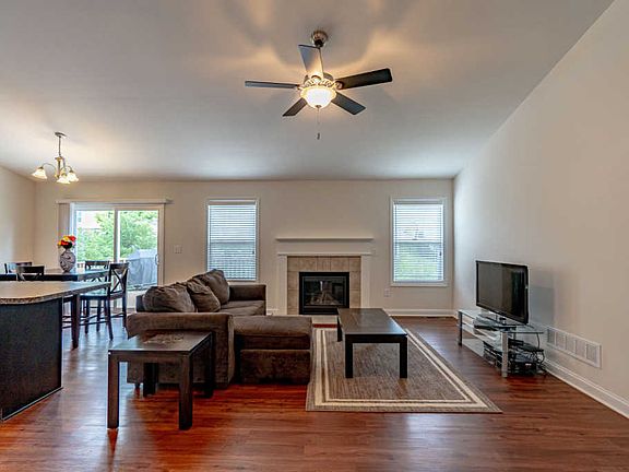 New Price! Almost brand new! 2.5 years young -3 bed, 2 bath hard to find walkout ranch that features a large eat in kitchen w/stainless steel appliances, an open floor plan, w/fireplace, vaulted ceilings & more. The first floor master offers vaulted trey ceiling, large walk-in closet and a private on-suite master bath with a double sink vanity. The unfinished walkout basement offers plenty of open space and is roughed in for a third full bath. Located on a cul-de-sac w/ large back deck and minutes away Beckley Creek Park w/ splash park, playground, hiking, mountain biking, and dog park. Washer and Dryer to remain with the home. Don't miss!