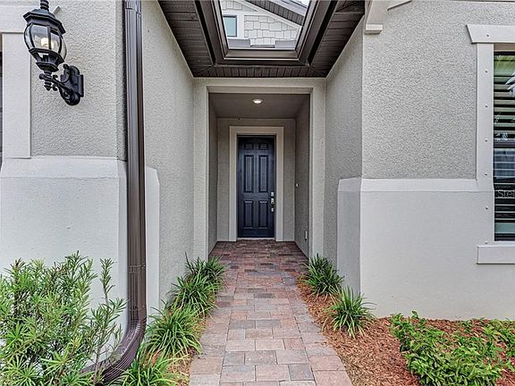 Located in the 55+ community of Del Webb, the highly sought Summerwood model is the perfect fit for you. Built in 2018, it has been impeccably maintained and exudes beauty and tranquility. Over 70k of striking upgrades are evident from the moment you enter the home. You will appreciate the den with and second bedroom that ensure privacy and comfort for yourself and guests. The interior boasts exquisite appointments with high ceilings and 8' doors, diagonal porcelain tile throughout the entire house, additional security with flood lights, keyless garage entry and an extended covered lanai perfect for relaxing and watching the deer in the alluring preserve. The elegant kitchen is the heart of this open floorplan and comes equipped with a gas stove, stainless appliances, granite counters, marble backsplash, and a reverse osmosis low pressure drinking water system. Enjoy the tranquility of the master suite that boasts beautiful preserve views, a large walk-in closet and a spacious bathroom with walk-in shower featuring a well planned niche. Both the bathrooms include granite counters, undermount sinks, floor-to-ceiling tile in the showers. The extended garage is perfect for your golf cart or just additional storage. Del Webb is an active community beyond compare, featuring world class resort-style amenities and activities including fitness center, resort pool with lap lanes, bocce and pickleball, grand clubhouse with full-time Lifestyle Director, the Lakehouse restaurant, social clubs, and group outings!