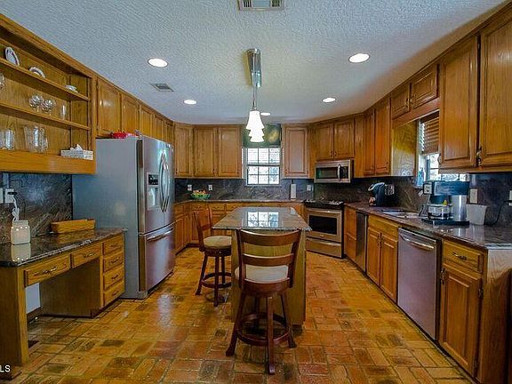 Beautiful secluded all brick home situated on 2.19 acres with plenty of hardwood! This 3 bedroom 2.5 bath house features an open kitchen/dining area with real brick flooring, granite countertops, and stainless steel appliances. Spacious living room with cathedral ceiling, wood burning fireplace and French doors which lead to the backyard. Office located in the front of the house which could be used as a 4th bedroom. Large master bedroom with updated master bathroom. Updated HVAC. Large workshop and metal storage building included. Call to view today!
