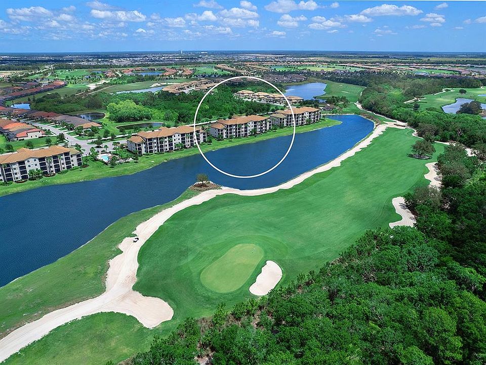 NOW JUST $275,000 FOR FURNISHED UNIT WITH GOLF MEMBERSHIP - AN AMAZING DEAL! This one of the most AFFORDABLE CONDOS in Lakewood National and is offered FULLY FURNISHED and with full GOLF MEMBERSHIP for the larger size unit! Don't miss this incredible opportunity! Overlooking the 11th hole of the Commander golf course at Lakewood National, sits this charming and FURNISHED Birkdale floor plan condo. With 2 bedrooms and 2 full bathrooms, and boasting both beautiful lake and serene golf course views, this unit is perfect for those looking to "right-size", for a seasonal home, or an investment opportunity with 30-day rentals allowed. Included in your HOA dues is membership to Lakewood National, allowing you to take advantage of the resort-style amenities including two 18-hole championship golf courses, the Piper and Commander, both designed by Arnold Palmer. Also included is access to the grand clubhouses, resort-style pool, 8 tennis courts, 4 pickleball courts, fitness center, spa, restaurant, and more. You almost never need to leave the neighborhood! This unit includes a covered carport parking space, and easy access via the stairs or building elevator to the second level which is perfectly positioned to take in the views. The interior is graced by large format tile flooring, crown molding, an open floor plan, and impressive southern exposure views. The great room is centrally located with remote-controlled blind and sliding glass doors to the private, screened in, paver balcony overlooking the lake and golf course. The kitchen is outfitted with abundant solid wood cabinetry that reaches to the ceiling, 2024 rechargeable undercabinet lighting, central island with counter-height seating, granite counters, and stainless-steel appliance suite. The dining room offers large bay-style windows to take in the views, and enough space to even add a small desk for more functional space. Enjoy enhanced style with 2022 kitchen pendant lights and 2022 dining room chandelier. The primary suite has plush carpeting, large walk-in closet, and en-suite bathroom with walk-in shower. The guest bedroom is equally as comfortable with an adjacent full bathroom. Peace of mind is secured with impact windows and doors throughout, easy "lock and leave" living, 2024 rechargeable motion sensor light at the front door, surge protection and large storage room outside of your unit just for you. Included in the Lakewood National condo dues are cable, internet, water, sewer, building maintenance, pest control, elevator, and an exclusive pool located just steps away for convenience. Lakewood National is one of the area’s premier gated communities for elevated, resort-style living. Lakewood Ranch, the top multi-generational community in the country for seven years in a row with plentiful shopping, dining, A-rated schools, parks, and nearby beaches.