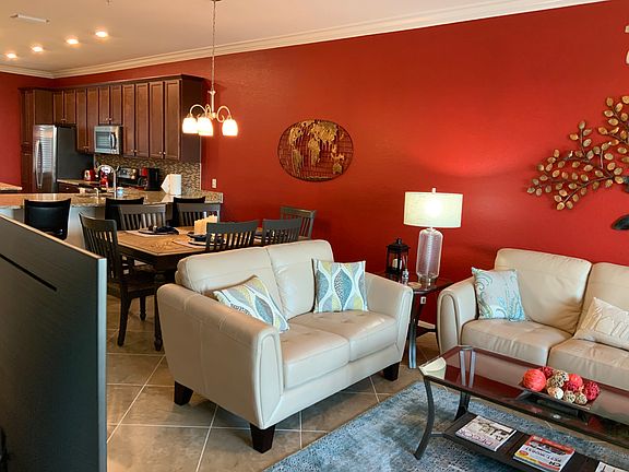 Luxury Condo located in a gated community that offers all the these amenities: two 18 hole Arnold Palmer designed golf courses, eight Har-tru tennis courts, pickle ball courts, large swimming pool with walk-in access, hot tub and lap pool, gym with machines or free weights, SPA, aerobics room, Tiki Bar, Large Restaurant, several satellite pools and more. The condo is a two bedroom, a two Bath, fully furnished including kitchen with all major and minor appliances, two sets of dishes, flatware and glassware service for eight, in condo laundry facilities, over 1,100 square feet of luxury living space, large storage room across the hall from the front door, covered parking, your private lanai overviewing the 11th fairway and 12th hoes on the Commander Golf Course. A copy of the lease is available upon request.