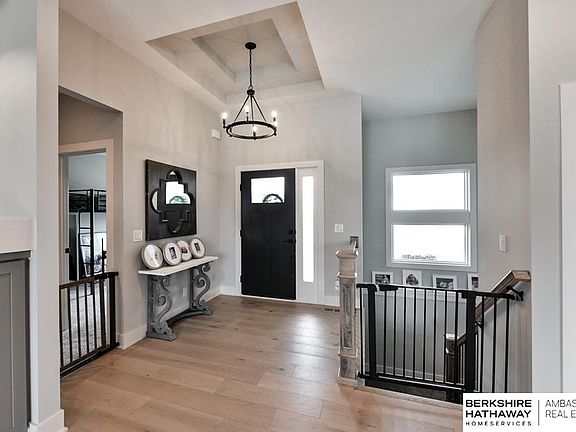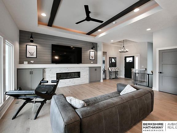 Contract Pending BACK UP OFFERS ACCEPTED Don't miss this 5 Bed/3 Bath/ 3 Car Ranch style home situated in Bennington's Newport Vista neighborhood. Boasting over 3100 finished sq ft of living space this split bedroom ranch plan is on flat lot backing to trees & an acreage lot for the next level of privacy. When you enter the home you will notice the open & inviting modern farmhouse feel featuring shiplap walls, shaker cabinets, farmhouse sink, & black light fixtures. The fireplace wall in the great room makes a statement w/ a linear fireplace, shiplap, & built-in cabinets. The kitchen features modern high end style & a huge walk-in pantry w/ coffee bar, quartz countertops, custom cabinets with custom hood & birch shelving, & stylish hard wood floors. The primary suite is privately tucked away & adjoins the laundry room. Downstairs you will enjoy the fully finished basement complete w/ large rec room w/ fireplace, wet bar & island seating, 2 BR, both w/ walk-in closets, 3/4 BR