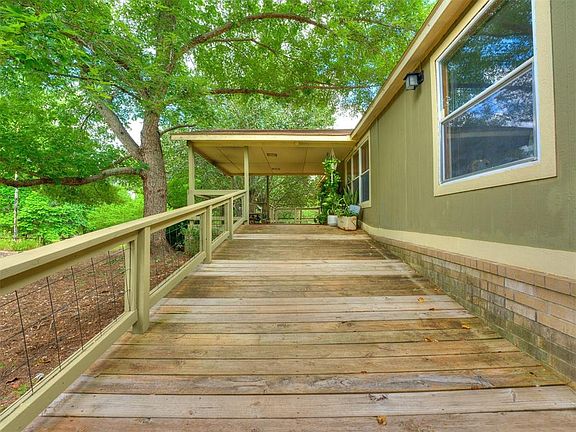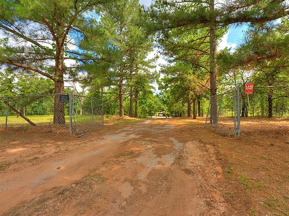 Relax as you come home down your pine tree lined drive to your beautiful home nestled in the trees! Fresh paint inside and ready for your family! 2 living or 1 living and 1 dining. Large island has seating and ample storage. Speaking of storage, this home has abundant storage thru-out! The kitchen has every part dedicated to great storage plus a pantry and extra storage and a small refrigerator in the utility room. Pantry has plumbing stubbed out to change it back to a 1/2 bath if desired. Kitchen is open to the living with a wood burning fireplace. Primary bedroom is at one end of the home with door to the huge, fairly new deck. Primary bathroom has a 'claw footed tub' and an oversized shower! Large covered and shaded front deck is ideal for sitting and visiting and cookouts! Extra wide ramp from carport to this lovely area. There is a space between the house and the workshop would easily accommodate a vehicle, utility trailer, camper or boat! 26 x 36 workshop with a super great work area in one corner, and an attached 3 carport. Great fenced yard for animals and little people! There is a gate off of SE 89th to access the north side of these 5 acres. Raised gardens in the back yard. Property is fenced on the East, South and North only. Minutes to I40, TAFB and MWC. ***Walk in storm shelter!*** FHA appraised at $269000, appraisal is in the Supplements.