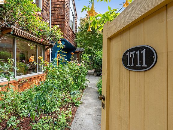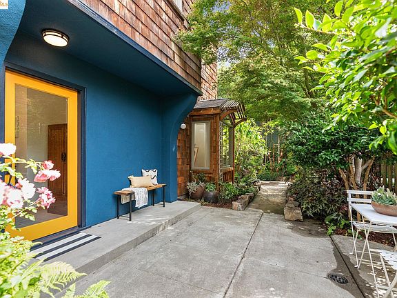 Artist-designed custom home built to maximize light, privacy, and indoor/outdoor flow. Surrounded on two sides by a magical, mature garden decorated with custom art that stays with the house, this is one of two homes on the lot and is located on the back half. The first floor boasts an open, versatile layout with the kitchen, dining, and living room/office all flowing into one another. Big French doors open to the yard, and a half bath completes the lower level. The upstairs includes two bedrooms, an updated bathroom, and a stunning, one-of-a-kind, oversized family/project room with soaring ceilings that was the artist owner's former studio. It features floor-to-ceiling windows. Enjoy being in the heart of Berkeley's international food district with Fourth Street and Acme Bread just blocks away. N. Berkeley BART, Transbay G Bus, and Capital Corridor Amtrak provide a myriad of commute options.