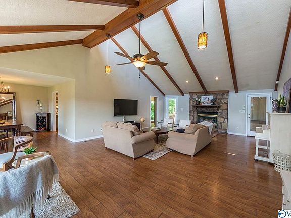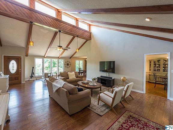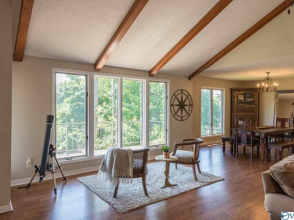An architectural dream minutes from downtown with expansive views of Monte Sano. This one story open floor plan features a detached 2 story apartment perfect for bonus living space or a rental opportunity. Natural light illuminates the vaulted beamed ceilings by means of high casement and clerestory windows throughout the updated home. The beautiful, tree-lined backyard creates privacy perfect for outdoor entertaining. Other features include: 2 car garage and additional parking, new HVAC 2019, no outlet neighborhood, large covered deck space, Google Fiber, sprinkler system, 12 minutes from Redstone Arsenal