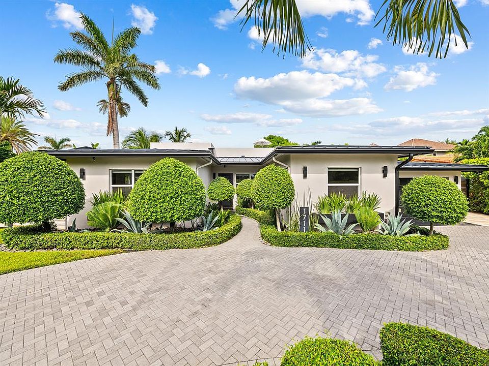 Magnificently reimagined, this home combines modern sophistication with timeless luxury, with the feel of brand-new construction. Sun-drenched interiors flow through an open-concept design, glass stacking doors dissolve the boundary between indoor and outdoor living. Entertain beneath the covered terrace with its louvered electric ceiling, swim in the sparkling saltwater pool—heated or chilled for year-round enjoyment—or retreat to the rooftop terrace for panoramic views of waterfront yachts. The chef’s kitchen is beautifully appointed with top-tier appliances while the serene primary suite offers dual custom closets and tranquil bath. Thoughtful enhancements, including a mosquito misting system, water filtration, and solar panels, elevate everyday living with effortless elegance.