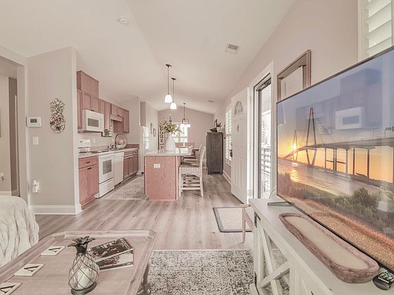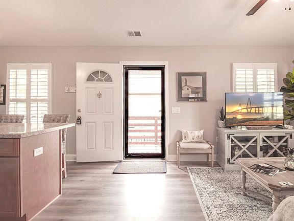 This delightful Single Family home, 2-bedroom, 2-bathroom retreat is ideally situated, just a short drive from Folly Beach and mere minutes from James Island County Park. This property offers a ton of upgrades that include plantation shutters, designed closet inserts, storage cabinets in the laundry room, front storm door, shutters on exterior front windows, gutters in place, not to mention the meticulously landscaped grounds, featuring flourishing banana trees set to bloom this summer, along with a secure fence for added privacy and peace of mind. Experience coastal living at its finest in this captivating home, where every detail has been thoughtfully curated for your enjoyment. Why not call this your new home?This is not a manufactured or modular home.There is a first right of refusal on this property. See deed in the documents tab, as well as an addendum that needs to accompany any offers.