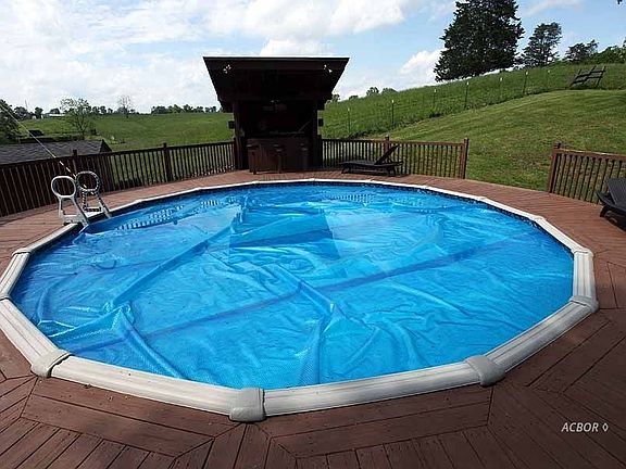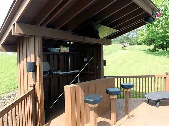 Brick home sets on a fully finished basement, has attached garage and detached garage, above ground pool, hot tub, bar at the pool deck, fully stocked pond, pet safe underground electric fence.