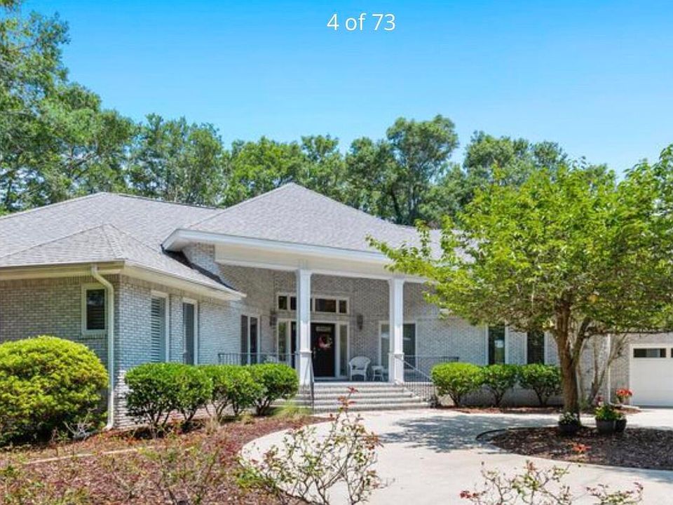 Custom-built, architect-designed, one owner home in Brick landing Plantation. This all-brick home was designed to capture the views. Take in vistas of three different golf holes and two water features with views from almost every window. The interior of this home is absolutely stunning with 18-foot ceilings in the grand living room. This home is the definition of an open floor plan concept. 2nd living area has a television space, 4 top card table and open to the formal dining area and kitchen. Wow, what a kitchen. Granite counter tops, large prep island and a large bank of cabinets worthy of any chef's utensils. Large hood over the glass cooktop and built-in pantry. The owner's suite has views galore, a large bath with whirlpool tub, separate walk-in shower and massive walk-in closet. Both guest suites are big with individual bathrooms. There is even a dedicated office with tons of built-ins for all your books and decor items. Hardwood flooring throughout the main areas of the home. Beautiful yard has mature landscaping and sprinkler system. Over-sized rear porch for taking in all the golf and water views. Circular driveway leads to a two-car garage. A huge storage area is available above the garage. All this and located in one of the most sought-after neighborhoods in the South Brunswick Islands. Brick landing Plantation is a 24-hour gated community. Security officers patrol randomly to keep things in good order. There is a very large community pool with hot tub, kiddie pool and plenty of sun decks or covered spaces for viewing the kids in the shade. Composite tennis courts, bocci ball court and walking trails give plenty of opportunity for activities and meeting neighbors and friends. There is an 18-hole championship golf course offering multiple levels of membership and some of the best views in Brunswick County. Come and see what Colonist Square and Brick landing Plantation have to offer you and your family.