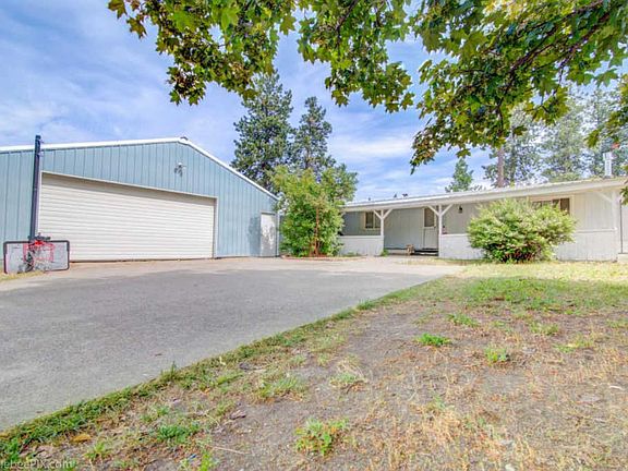 Manufactured Home on Nearly half an acre in Post Falls with a shop! This home features 4 bedrooms, 2 bathrooms, 1,608 square feet and a master suite located on a .418 acre lot. Outside includes an attached 1 car garage, a 28x32 shop with power, covered patio and alley access.No HOA! Needs some TLC and is being sold as-is.