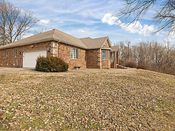 This all brick custom built home features 2 bedrooms with 2.5 baths and a 4 car garage and sits on 2.2 beautiful acres just down the road from the Republic Aquatic Center. As you walk into the home you enter into a large living room area with 10 ft. ceilings and a wood burning fireplace. The home also features a larger formal dining room, kitchen, eat in kitchen area, an office or folding room off of the laundry room and SO much storage! Off the living room there is an enclosed sun room perfect for entertaining or sitting out watching the beautiful view of the property. Downstairs you will find another living area, bedroom, bathroom, and more storage areas. This home features a 22x22 shop/garage building as well as another outbuilding that is set up for an apartment with an extra 725 sq ft of living space with a kitchenette, bedroom and bathroom attached to a 22x15 garage! This is a beautiful built home and ready for its new owners.