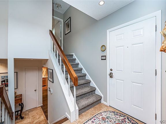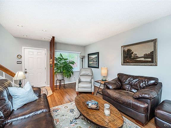 Immaculate from Top To Bottom! Come & Enjoy this Spectacular Contemporary 3 Bedroom 2 Bath End Unit Townhome in The Popular Foxfire Subdivision. The spacious foyer welcomes you home & you will immediately begin to enjoy the vaulted living space w/an eye appealing fireplace, recessed lights & wood plank flooring. The amazing kitchen is so charming & boast, concrete & granite counters, deep undermount sink, tons of cabinets, stainless appliances, an island w/shelves, smooth cooktop range & gorgeous travertine flooring! The vaulted dining area offers a view of the back yard, a beautiful chandelier & travertine flooring. The spacious primary bedroom offers new carpet, an Ensuite bath w/new vanity, wainscoting, a tile shower & large walk-in closet w/California style shelving. On the lower level there are 2 more bedrooms, a utility closet & a 2nd renovated bath. Out back there is a newer screened porch & fenced back yard that backs up to a wooded area! Other features include Champion thermal pane windows, new doors & storm doors, new sliding glass door w/interior blinds, new screened porch in 2020, off street parking, beautiful landscaping and use of the Raintree lake & jogging trails!