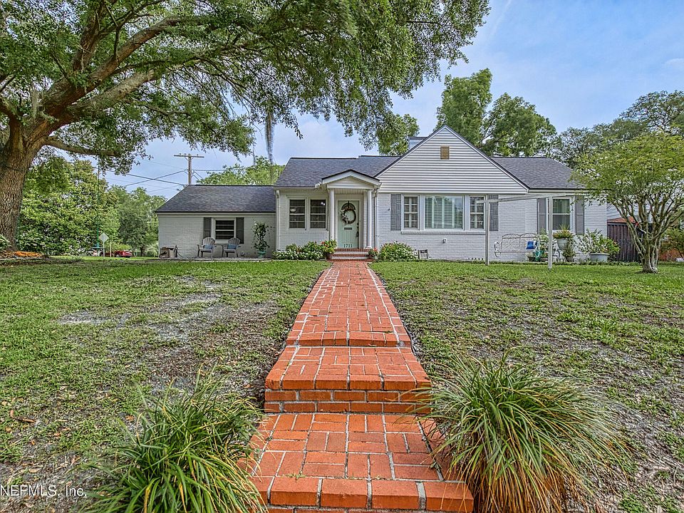 Location! Location! Charming 3/2 Brick Avondale pool home in the Fishweir school district on large corner lot. Updated kitchen with gas stove, organizational racks in cabinetry, rolling island, ss appliances and pantry. Beautiful dining room with open shelves. Spacious living room with great natural light and gas fireplace. Large bedrooms with split floor plan and master suite. Also, lovely sunroom flex space. Plenty of closets plus stairs to attic with great storage space. Refinished hardwood floors. Original features retained throughout home with many extras. Enjoy the large pool and outside entertaining spaces. Newer roof, AC, HWH, paint. Updated electrical, plumbing and drip sprinkler system. Located within walking distance to the Shoppes of Avondale.