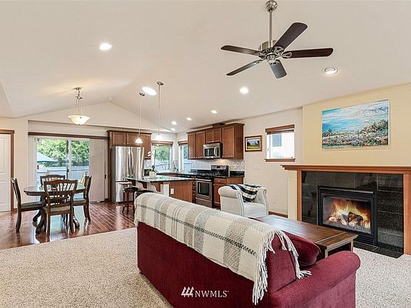 Lovely three bedroom rambler with no stairs in the very popular 55+ Big Fir Community. Wonderful open floor plan with vaulted ceilings and cozy fireplace. Kitchen boasts granite countertops, center island with eating bar, stainless appliances and abundant work space and storage. Master suite features a spacious bathroom with dual sinks and walk-in shower and nice walk-in closet. Wonderful back deck is covered and there is a patio too, all great to enjoy the sunsets. Attached two car garage with pull down ladder leading to attic storage.