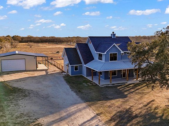 Welcome to your homesteading dream- a custom built farmhouse on 10 acres. Located in La Vernia ISD, this home features 5 bedrooms, 3 full bathrooms, a designated office and large detached 30x30 shop with dual rolling garage doors. The property is fully fenced with an additional generously-sized fenced backyard. Enjoy the charm of country living with peaceful views from the large front porch surrounded by mature trees. The stunning kitchen features ample counter-space and abundant cabinet storage. The first floor primary suite offers a luxurious on-suite and large closet. With its open floor plan, fresh paint, gorgeous wood floors and updated light fixtures this home is sure to be a welcoming retreat for all your family gatherings.