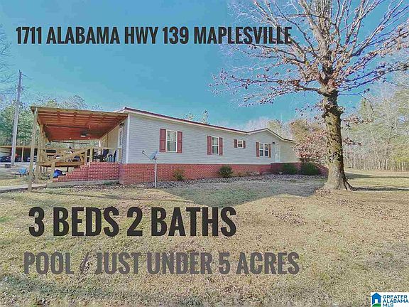 LOCATION 3 bedroom 2 bath home near Maplesville High School/Updated Manufactured home with brick foundation. Enjoy your morning coffee on the side porch that features full exterior porch shades. If you like farmhouse, you'll love the wooden interior doors. The dining room and living room have a fireplace. The Master Bath has a new standing shower and the most beautiful dresser vanity. The home features a metal roof, new siding ( 1 year old), new windows and HVAC unit is approx 4 years old. Two storage sheds behind the house. There is a second septic tank, power pole and breaker box on the property. The Country home sits on 4.72 +/- acres. Interior pictures will be added no later that Feb 27. Seller is offering a FREE One Year Home Warranty with offer for full listed price. Appointments for showing can be scheduled beginning March 1.
