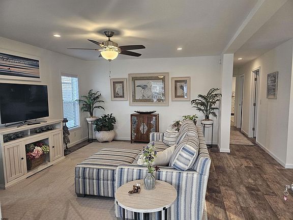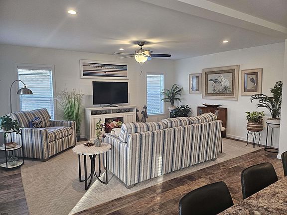 Welcome to Oak Forest II, the newest 55+ adult community in the heart of Egg Harbor Township! Step inside and be greeted by the light-filled living room featuring luxury vinyl plank floors. The gourmet kitchen is a chef’s delight, complete with stainless steel appliances, abundant cabinets & countertops, oversized island with seating for 4 & accent lighting. This home comes fully furnished in a beautiful casual chic, beach decor. Retreat to the owner's suite with a large walk in closet and spa like oasis en suite bathroom an oversized walk in shower. The covered front porch overlooks the expertly manicured yard. A large shed in the back yard is also included. This home has been meticulously kept and loved and looks brand new. Just minutes from the beaches of the Jersey Shore, this property is an ideal haven for both year-round living and summer getaways. Because this mobile home is newer, it can be financed. Don’t miss the opportunity to acquire this stunning home. Schedule a tour today!