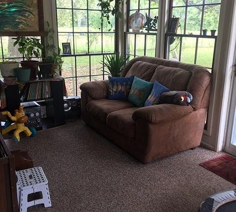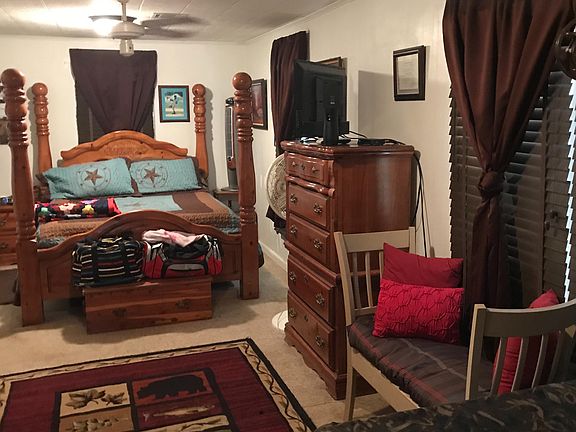 3rd bedroom is small & cozy with entrance from master bedroom. Quiet country living with outdoor kitchen, all fenced/gated on 2.45 acres with beautiful oak trees along with fruit trees.(pecan, fig, persimmon, navel, kumquat) Sunroom, breakfast area, large utility room, covered patio, workshop, & more. Barn has concrete pad, loft & animal pen attached. RV shed also has concrete pad. Locked gate at entry way with Vivint security system. Updates within the last few years include,new storm door, floor leveled in sunroom, new flooring in kitchen, bath & sunroom. blown in insulation in attic, new HVAC in 2013, new light fixtures & ceiling fans, electrical upgrades. New PEX piping under house. Remodeled baths with new shower. New dishwasher, painted outside house & outdoor kitchen. 2020-09-11