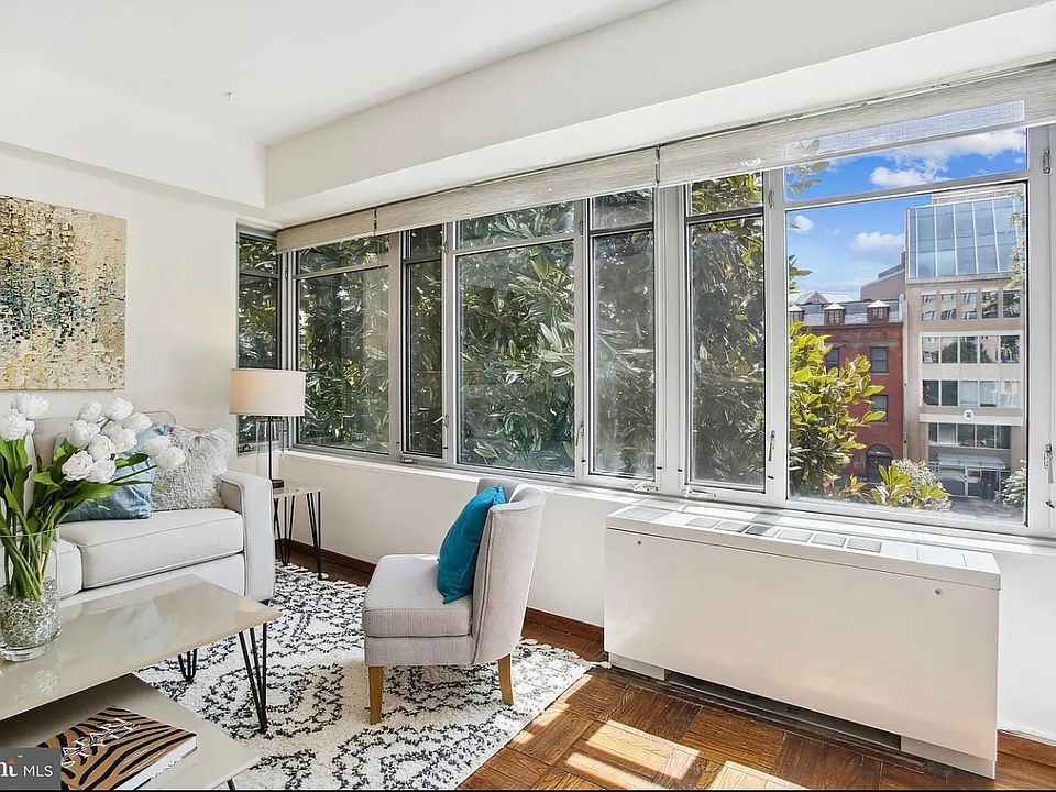 Modern Studio in Prime Location: Bright, Stylish & Comfortable Studio in Dupont. This well-designed studio offers modern city living with quality amenities and in-unit comfort. Neighbors are primarily 9-to-5 professionals and graduate students. Unit 304 sits between two magnolia trees, with a full wall of insulated windows overlooking Massachusetts Avenue, the Colombian Embassy, and Scott Circle. Natural light fills the space year-round, while south-facing windows provide winter-time sun exposure for indoor plants. The windows also give excellent temperature and sound insulation. The sleek kitchen features modern white cabinetry, marble countertops, and reliable appliances, including a gas range, large refrigerator, microwave, disposal, and dishwasher. Hardwood floors run throughout, with tiled flooring in the kitchen and bathroom. Storage is ample, with a closet by the entrance and a walk-in closet by the restroom. Building amenities include: - 24/7 front desk service: Secure entry, package handling and storage, lock out assistance - On-site maintenance: Quick and reliable support - Rooftop deck: Panoramic views, grills, and covered spaces to relax or entertain, and lounge chairs to sunbathe (if that's your thing!) - 24/7 laundry facilities: Convenient, app-supported washer/dryers accessible anytime Overall, this studio is a practical and sensible blend of price, location, comfort, a fantastic view, and amenities. Utilities: Rent is inclusive of utilities (electricity, water, gas, heating, cooling, garbage collection). Smoking: No smoking in unit. Credit score: A credit check will be conducted to ensure a score of 690+ (negotiable), co-signatories score will be weighed, in accordance with applicable fair housing and DC housing laws. Background: A background check will be conducted to ensure safety of residents in accordance with applicable fair housing and DC housing laws. Rental History: A check of rental history and previous landlords' remarks will affect selection to ensure responsible use of property and financial obligations in accordance with applicable fair housing and DC housing laws. Employment Verification: Will verify current employment status of tenant and/or co-signatory in accordance with applicable fair housing and DC housing laws. Occupancy Limits: Potential tenant's planned occupancy levels will affect selection criteria in accordance with applicable DC housing laws.