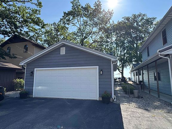 Welcome to Lake Manitou! This beautifully updated main lake home offers everything you are looking for in lakeside living. Featuring 3 bedrooms, 2.5 baths, and a large lakeside deck for shady relaxing. The home sits on generous 40x134 lot and has a detached 2 car heated garage that is well insulated w/metal roof. Plenty of parking space. Main floor bedroom and updated bathroom. Charming updated kitchen with painted cabinetry, bright white Corian countertops and appliances included. Gas vent free fireplace in living room. Upstairs has 2 more bedrooms with hard wood floors, lots of closets and stylish updated half bath. Newly installed 3 mini splits for energy efficient heating/cooling on each level. Walk out basement has 2nd full newly updated bath, laundry area, storage and family room. Beautiful landscaping and completely fenced yard. Pier included and is ready for you to bring your boat and lake toys. Located near Nickel Plate Trail, shopping and dining with easy access to US 31.