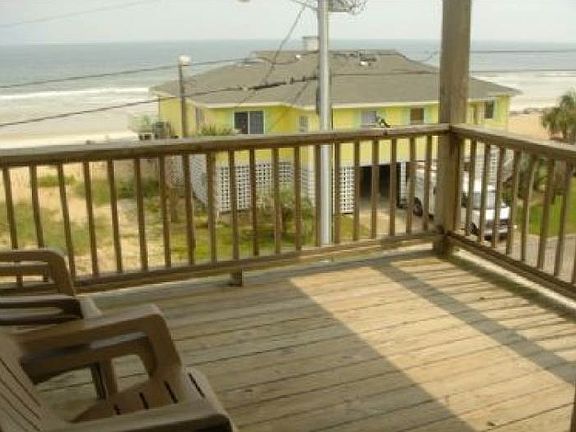 WILL BE AVAILABLE SECOND WEEK OF SEPTEMBER! Off season rental beautiful Furnished Beach Condo with great OCEAN VIEWS 3 bedrooms, 2 full baths and a half bath in the hallway. Large living room with ocean views.Great kitchen area that has a bar for entertaining and an eating area as well that is open to the living area. Large covered front porch/deck. The unit features 3 large bedrooms and the master is 16x11 square feet. The Condo comes with an out side storage closet on the ground floor and lots of room for parking. The Condo is also steps from the ocean and the pier, you can see them from the deck. Includes water,sewer, and trash!Rental References and Credit Check Required!