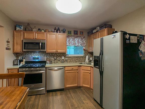 Super nice, updated 2-story home on shady lot. Both interior and exterior reflect the TLC shown this home! 3 brms, 1 1/2 baths, large 2 car detached garage. Inviting foyer leads to living room with fireplace plus separate family room offers space for both young and old. Updated fully applianced kitchen with hard surface countertops and beautiful cabinetry. Quaint eating area in kitchen but good size dining area in family room with newer atrium doors leading to wood deck. 3 bedrooms and full bath on upper level. Plus updated 1/2 bath on main level. Many updates: gas hot water htr 2020, roof and insulation 2015. Updates since 2017: windows, ceramic tiled tub surround, remodeled kitchen with hard surface countertops with newer appliances, laminate flooring and carpeting, vinyl siding on garage and the list goes on! Nice large partially fenced yard with deck and wood burning fire pit. Detached garage has party bar and storage. Shows great and has super curb appeal. Don't miss out on this move-in ready home for you and your family.