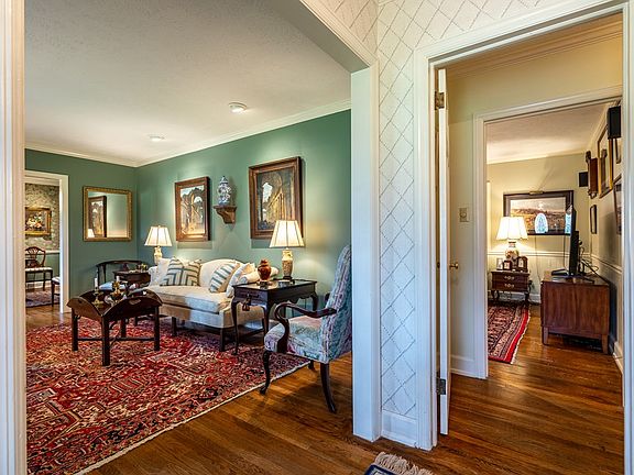 This mid 20th century ranch home on well manicured & landcaped yard is in the heart of NW Albany. Beautiful oak floors and nice wood trim, chair rail, and mouldings, solid wood doors, formal living and dining with recessed lighting and accented with beautiful crystal chandelier in dining room. All windows have been replaced with thermal glass panes & insulation has been added for more efficient heating & cooling. 4 bedrooms and 3 full baths, all of which have been updated. Two of the four bedrooms have large walk-in closets and primary bedroom has private bath with tiled shower with glass door and double vanity. Kitchen has been completely remodeled with custom cabinets with glass front doors, granite counters, all stainless appliances, double ovens, built-in microwave, overhead recessed lighting and built-in desk. Immediately off kitchen is guest bedroom & full bath; large laundry room and whole house attic fan. Access garage at rear door to find wonderful built-in storage - this would be ideal for future in-law suite or workshop. From garage you exit to double carport to accommodate parking from rear paved entrance. Off the kitchen is a large entertainment room followed by a four season heated & cooled sunroom complete with built-in bookcases and display shelves, storage, recessed lighting, and an abundance of windows to provide natural light. The rear yard has full chain link fencing and is served by fully automatic sprinkler system with misters in flower beds. The rear patio has an antique decorative fence. The home has a whole house dehumidifier system, a Sentricon termite control system, and a monitored security system. The home also has a fiber optic streaming service available, plantation blinds and/or custom window treatments on all windows, and a partially floored attic with pull down access. This meticulously maintained home offering 4 bedrooms, 3 full baths and over 2,600 square feet is conveniently located near shopping and churches. CLICK FILM REEL ICON AT TOP OF PAGE TO SEE VIDEO OF THIS FABULOUS HOME!