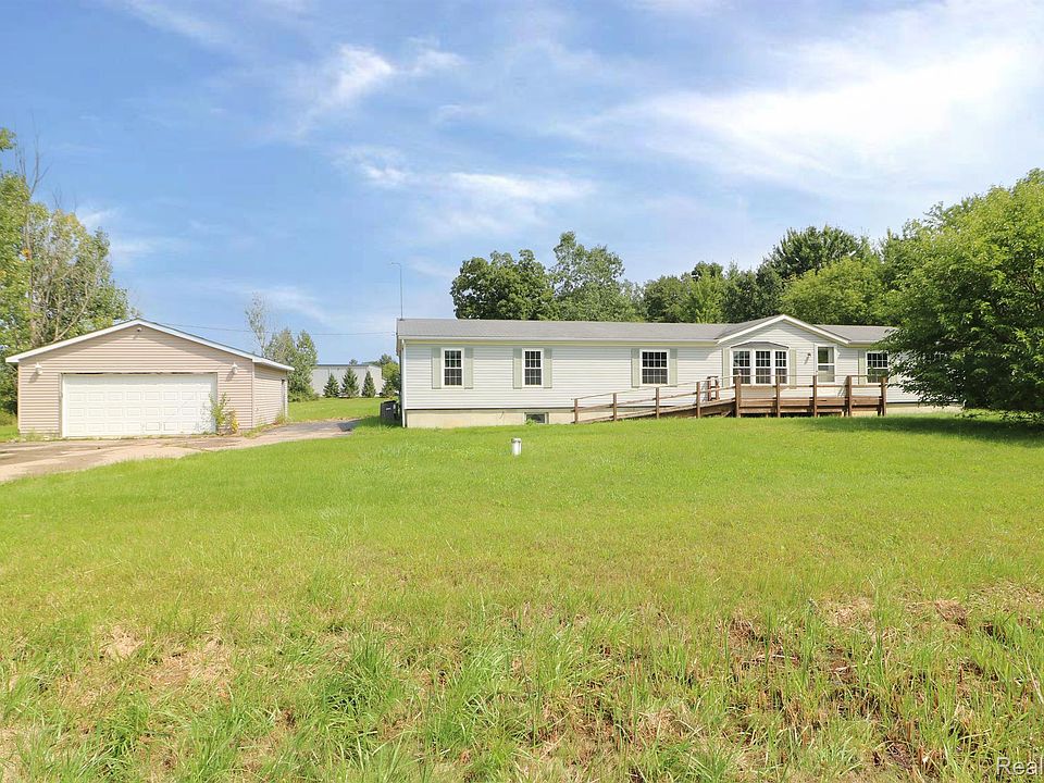 Great opportunity on this large four bedroom manufactured home on a 2 acre lot. The home has a great open layout with a formal dining room, kitchen with lots of cabinets, and nice sized living room. Large master bedroom has a walk in closet and its own private bath. Huge unfinished basement gives you lots of options. Two car detached garage. There is no Affidavit of Affixture filed on this home so it can only be sold cash, cash offers only can be considered.